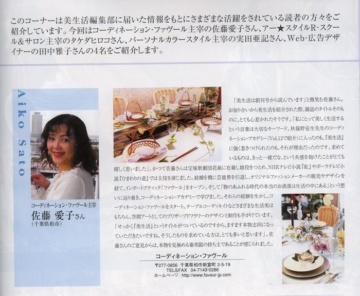 テーブルコーディネート講座を新設。 ホームページ http://www.faveur-jp.com/ を開設。