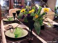 テーブルに花に料理に表わし皆様と楽しんでいきたいと思っています。